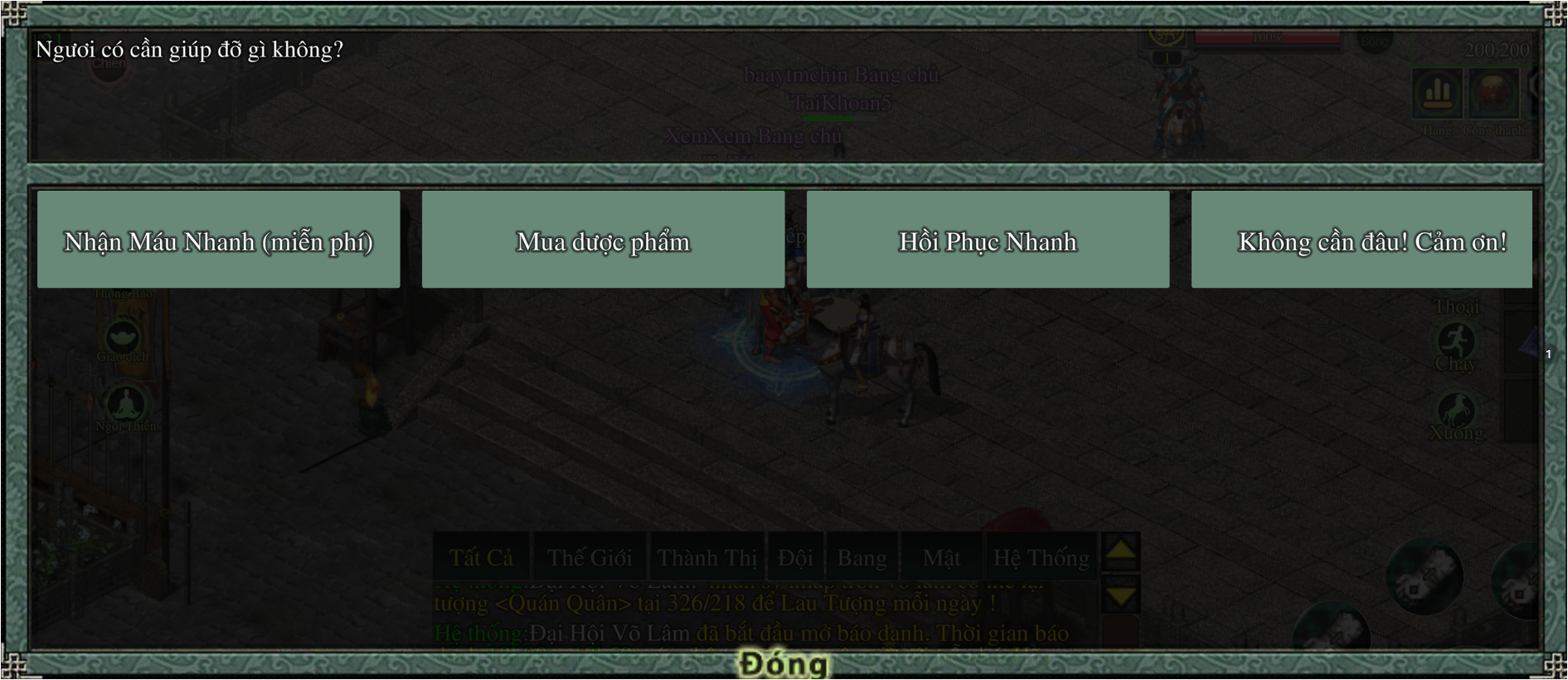 Yêu cầu có:  Lệnh Bài Đại Hội Võ Lâm