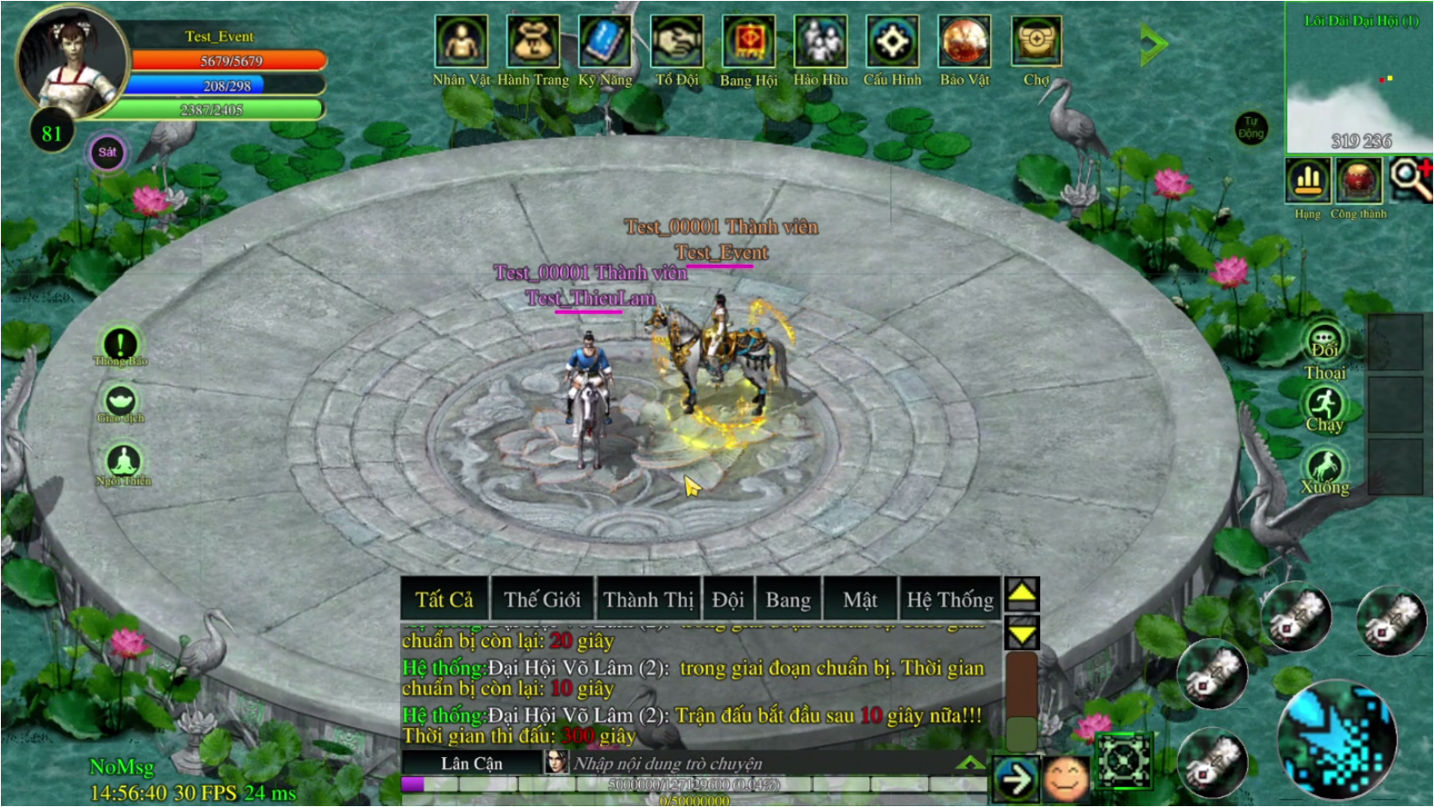 Quý cao thủ kiệt xuất hãy mau chóng rèn luyện công lực và tham gia ngay cuộc tranh tài kịch tính này để nhận những phần thưởng quý giá danh chấn thiên hạ cùng JX VÕ LÂM VIỆT Mobile.